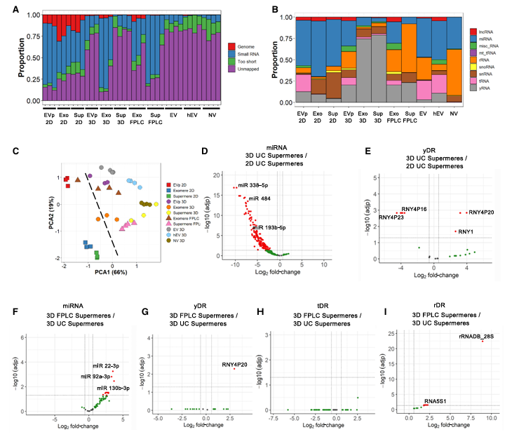 图3:非囊泡纳米颗粒(NVEP)和细胞外囊泡(EV)的小RNA含量分析