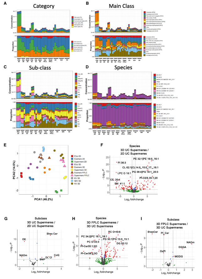 图4:非囊泡纳米颗粒(NVEP)和细胞外囊泡(EV)的脂质组学分析