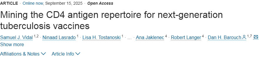 结核病疫苗设计缺乏明确的靶点。Barouch及其同事利用一个结核病暴露者人体反应数据集,开发了一个筛选流程来测试哪些抗原能引发人类免疫细胞的反应,然后根据反应强度对其进行排序。该过程揭示了许多可用于疫苗的结核病抗原。