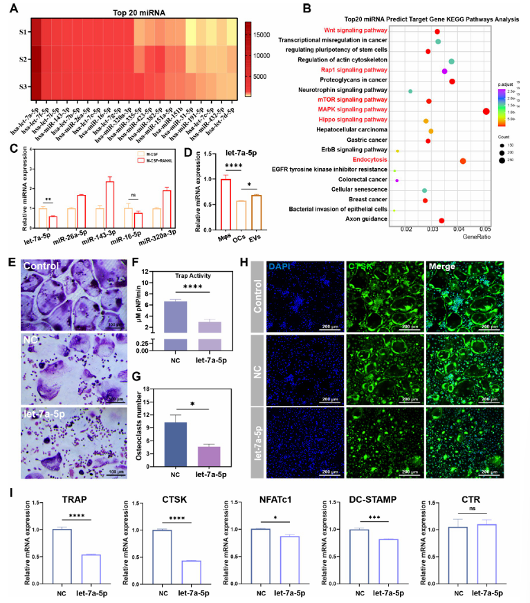 图3 外泌体miRNA let-7a-5p抑制破骨细胞分化