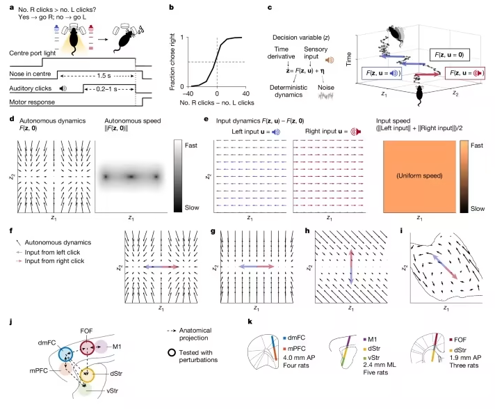 近日,普林斯顿大学团队发表在Nature的研究,用 AI 解码大鼠脑活动,首次精准 抓包 了大脑从 疯狂吸收信息 到 我意已决 的关键切换点 nTc(神经推断承诺时间),还发现这个瞬间的神经活动方向会发生近 90 度大转弯,仿佛 关上耳朵 不再理会新信息。这一发现不仅揭开决策的神经密码,更给 ADHD、等疾病的决策障碍提供了新靶点。